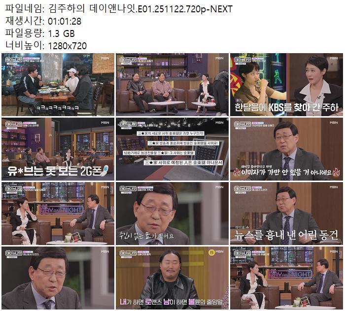김주하의 데이앤나잇.E01.251122.720p-NEXT.mp4 1.3 G 01:01:00 1280x720