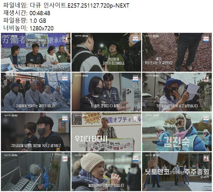 | 다큐 인사이트.E257.251127.720p-NEXT.mp4 | 1 G | 00:48:48 | 1280x720 |