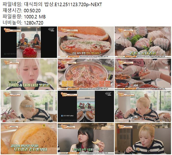 | 대식좌의 밥상.E12.251123.720p-NEXT.mp4 | 1000.2 M | 00:50:20 | 1280x720 |