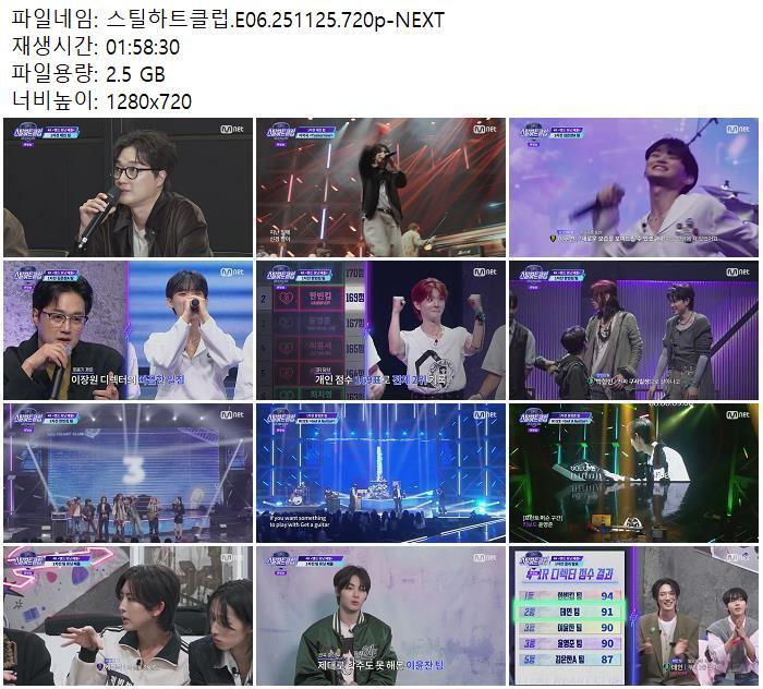 | 스틸하트클럽.E06.251125.720p-NEXT.mp4 | 2.5 G | 01:58:00 | 1280x720 |
