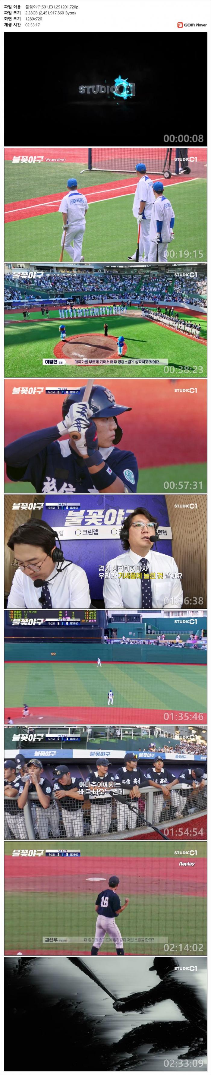 | 불꽃야구.S01.E31.251201.720p.mp4 | 2.3 G | - | 1280x720 |
