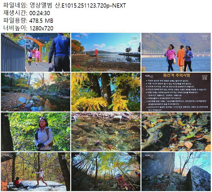 | 영상앨범 산.E1015.251123.720p-NEXT.mp4 | 478.5 M | 00:24:30 | 1280x720 |