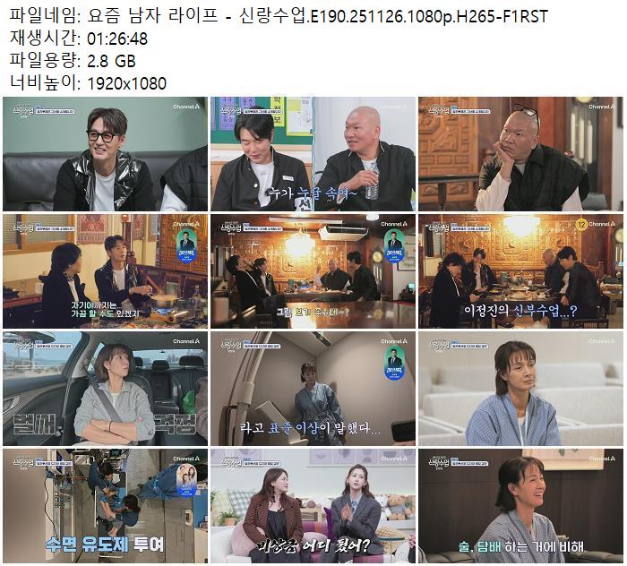 요즘 남자 라이프 - 신랑수업.E190.251126.1080p.H265-F1RST.mp4 2.8 G 01:26:00 1920x1080