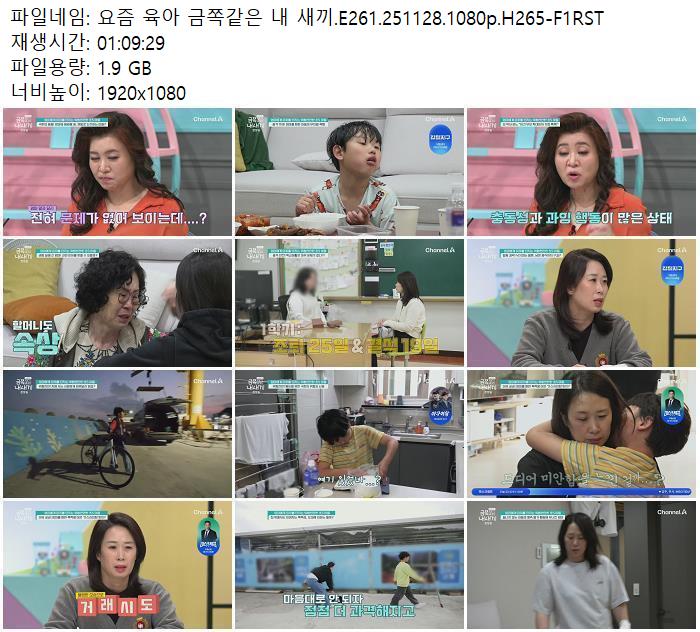| 요즘 육아 금쪽같은 내 새끼.E261.251128.1080p.H265-F1RST.mp4 | 1.9 G | 01:09:00 | 1920x1080 |