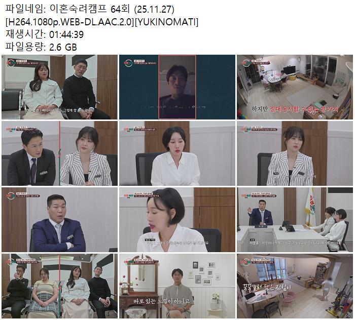 | 이혼숙려캠프 64회 (25.11.27) [H264.1080p.WEB-DL.AAC.2.0][YUKINOMATI].mkv | 2.6 G | - | 1920x1080 |