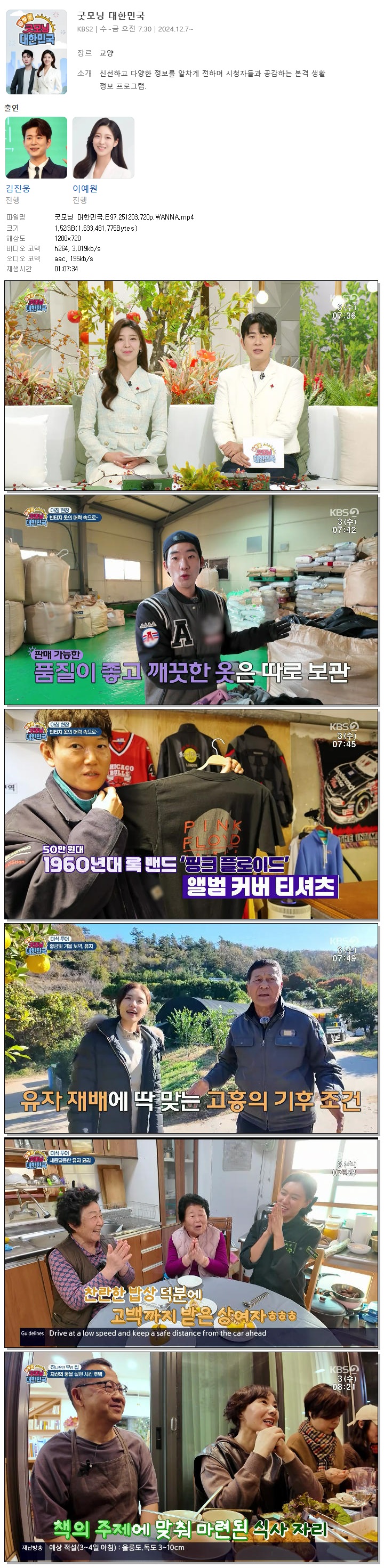 [KBS2] 굿모닝 대한민국.E97.251203.720p.WANNA[김진웅, 이예원].mp4 1.5 G 01:07:34 1280x720