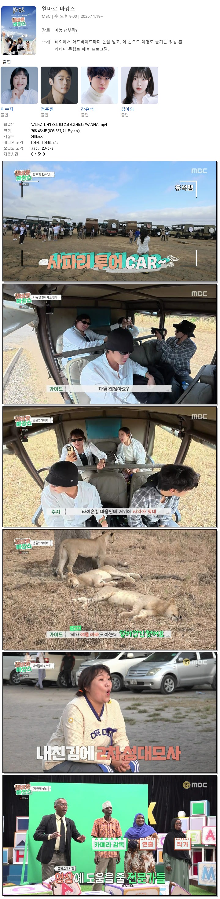 | [MBC] 알바로 바캉스.E03.251203.450p.WANNA[이수지, 정준원].mp4 | 766.5 M | 01:15:19 | 800x450 |