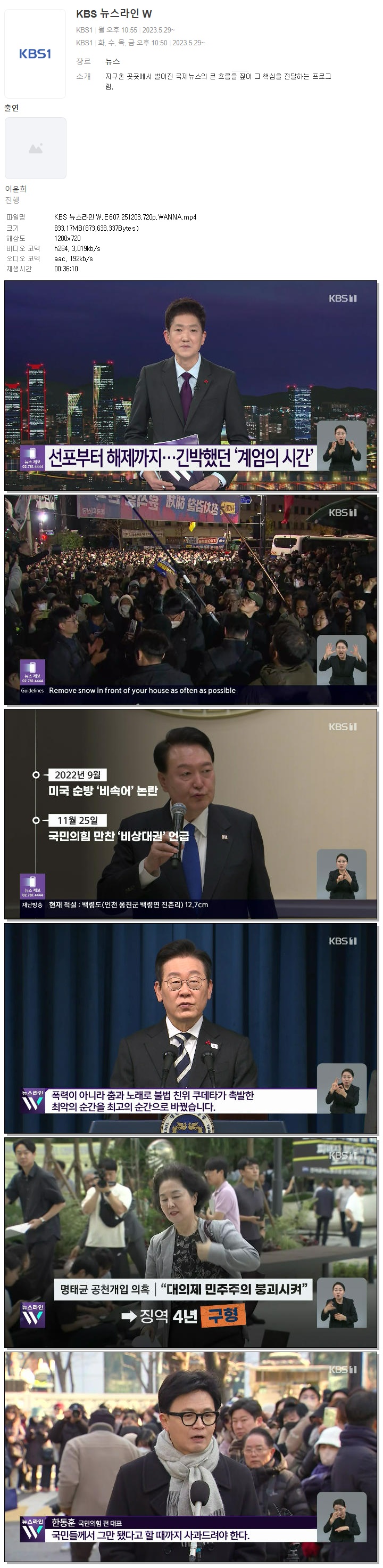 | [KBS1] KBS 뉴스라인W.E607.251203.720p.WANNA.mp4 | 833.2 M | 00:36:10 | 1280x720 |