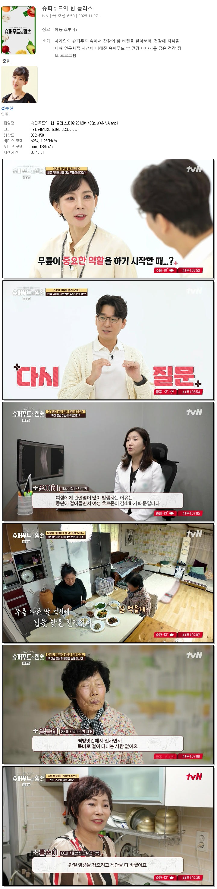 | [TVN] 슈퍼푸드의 힘 플러스.E02.251204.450p.WANNA[설수현].mp4 | 491.2 M | 00:48:51 | 800x450 |