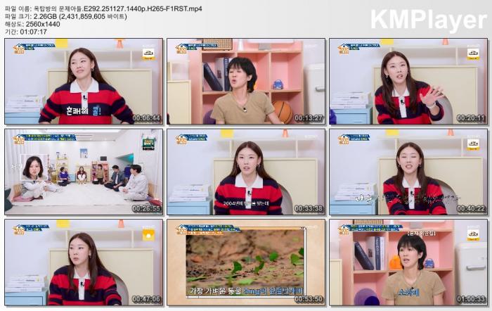 | 옥탑방의 문제아들.E292.251127.1440p.H265-F1RST.mp4 | 2.3 G | 01:07:00 | 2560x1440 |