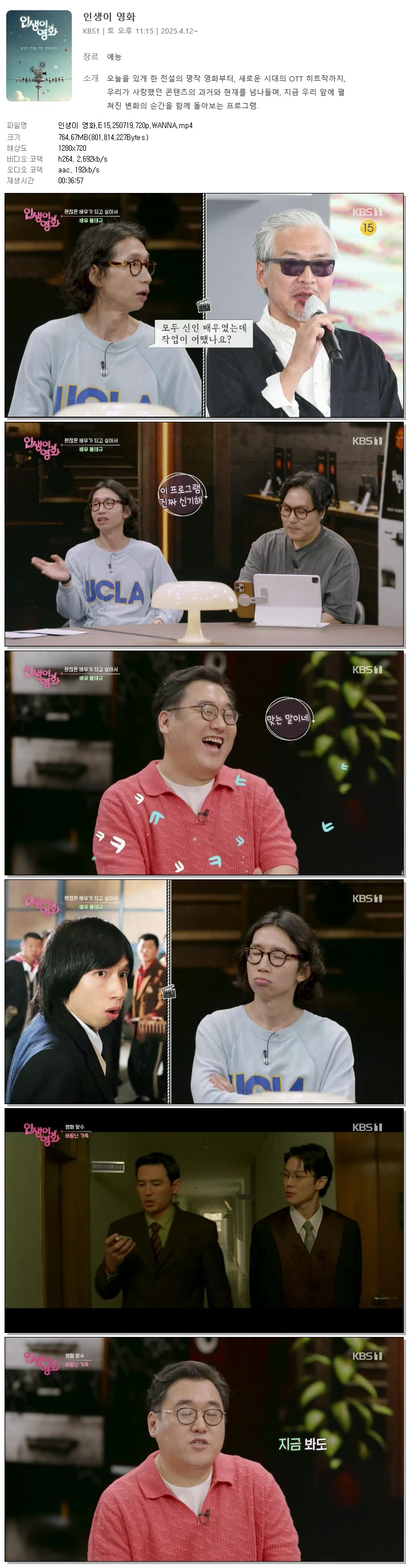 | [KBS1] 인생이 영화.E15.250719.720p.WANNA.mp4 | 764.7 M | 00:36:57 | 1280x720 |