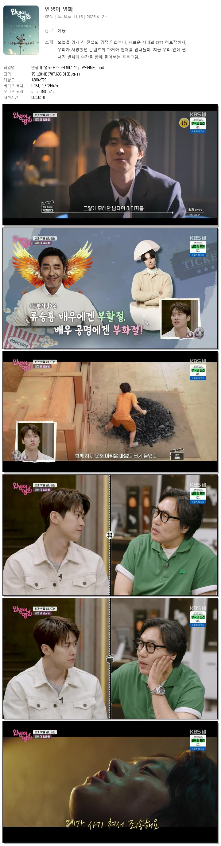 | [KBS1] 인생이 영화.E22.250907.720p.WANNA.mp4 | 751.2 M | 00:36:18 | 1280x720 |