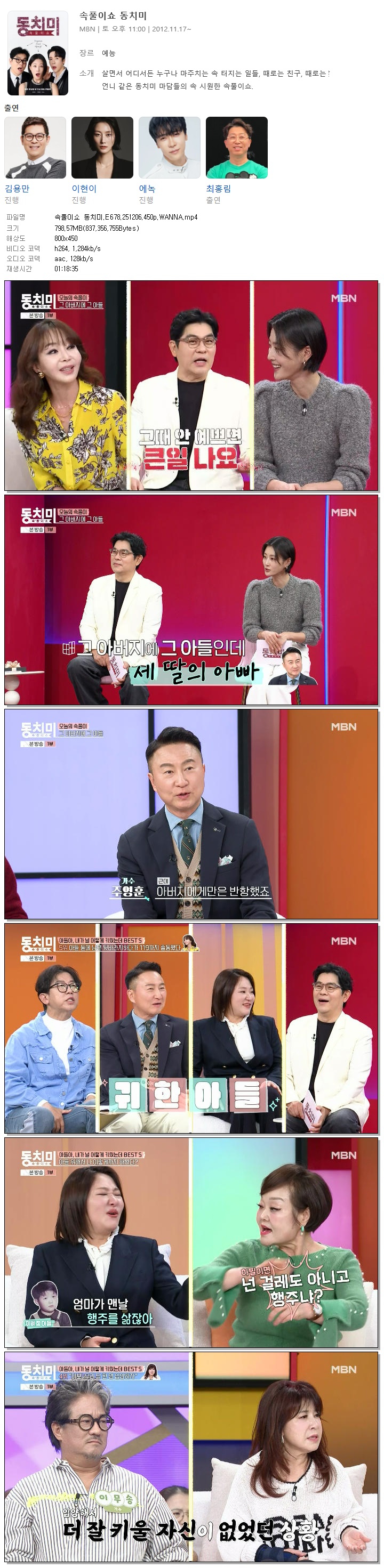 [MBN] 속풀이쇼 동치미.E678.251206.450p.WANNA[김미령, 주영훈].mp4 798.6 M 01:18:35 800x450