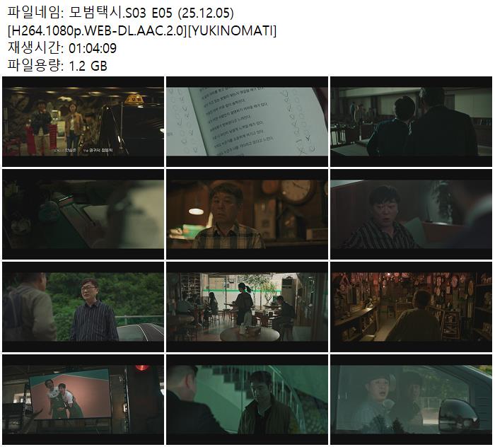 | 모범택시.S03 E05 (25.12.05) [H264.1080p.WEB-DL.AAC.2.0][YUKINOMATI].mkv | 1.2 G | 01:04:00 | 1920x1080 |