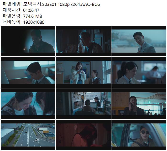 | 모범택시.S03E01.1080p.x264.AAC-BCG.mkv | 774.6 M | 01:06:00 | 1920x1080 |