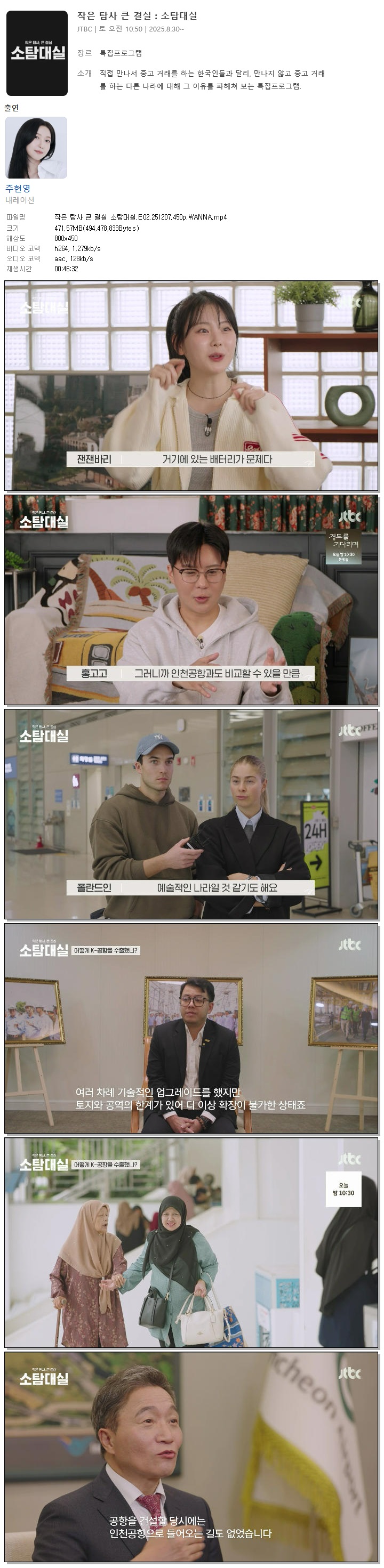 | [JTBC] 작은 탐사 큰 결실 소탐대실.E02.251207.450p.WANNA.mp4 | 471.6 M | 00:46:32 | 800x450 |