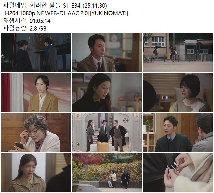 | 화려한 날들 S1 E34 (25.11.30) [H264.1080p.NF.WEB-DL.AAC.2.0][YUKINOMATI].mkv | 2.8 G | - | 1920x1080 |