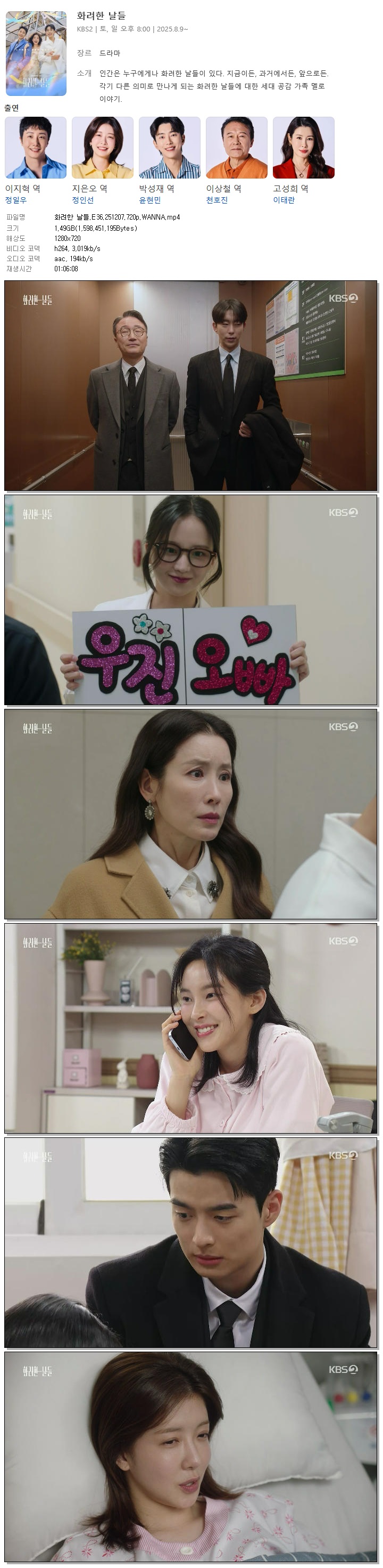 | [KBS2] 화려한 날들.E36.251207.720p.WANNA[정일우, 정인선].mp4 | 1.5 G | 01:06:08 | 1280x720 |
