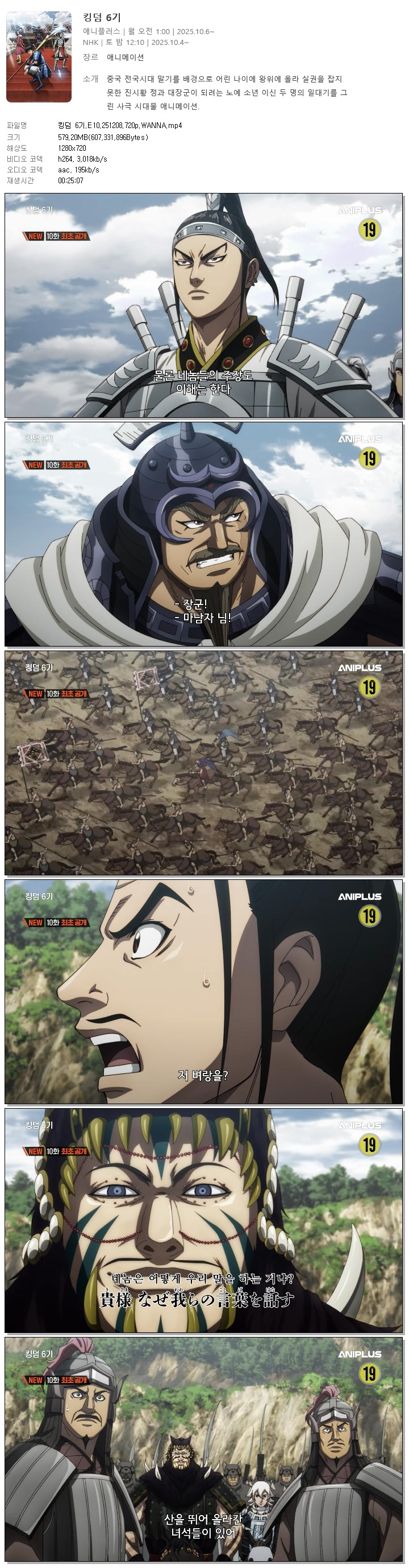 | 킹덤 6기.E10.251208.720p.WANNA.mp4 | 579.2 M | 00:25:07 | 1280x720 |