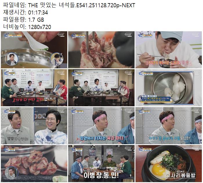 | THE 맛있는 녀석들.E541.251128.720p-NEXT.mp4 | 1.7 G | 01:17:00 | 1280x720 |