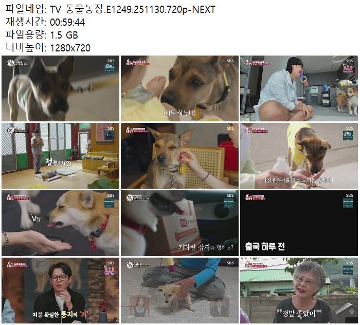 | TV 동물농장.E1249.251130.720p-NEXT.mp4 | 1.5 G | 00:59:44 | 1280x720 |
