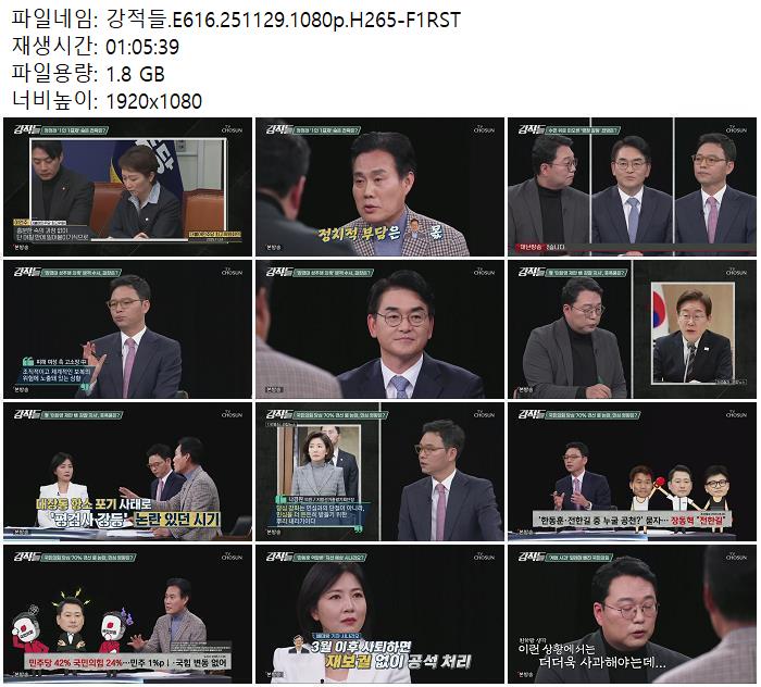 | 강적들.E616.251129.1080p.H265-F1RST.mp4 | 1.8 G | 01:05:00 | 1920x1080 |