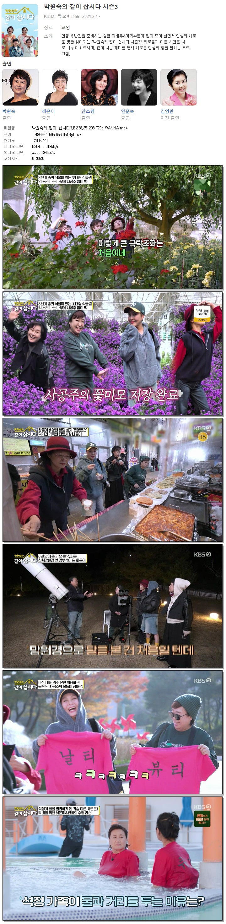 [KBS2] 박원숙의 같이 삽시다3.E238.251208.720p.WANNA[홍진희, 황석정].mp4 1.5 G 01:06:01 1280x720