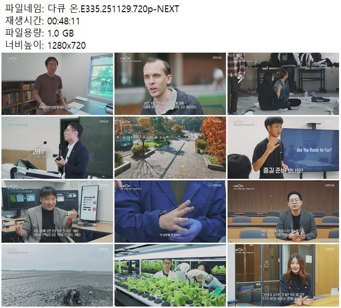 | 다큐 온.E335.251129.720p-NEXT.mp4 | 1 G | 00:48:11 | 1280x720 |