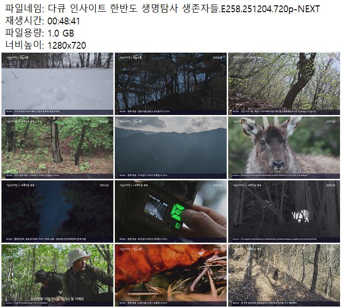 | 다큐 인사이트 한반도 생명탐사 생존자들.E258.251204.720p-NEXT.mp4 | 1 G | 00:48:41 | 1280x720 |