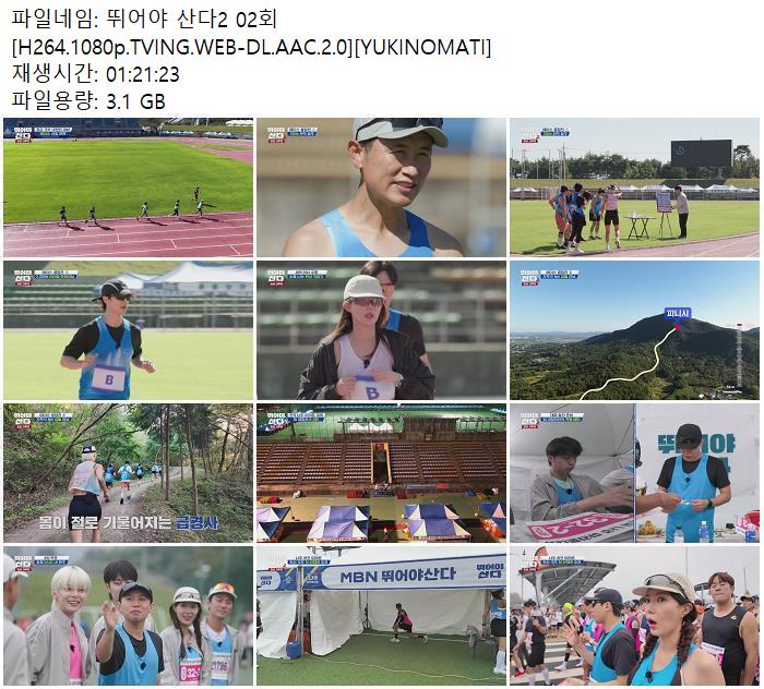 | 뛰어야 산다2 02회 [H264.1080p.TVING.WEB-DL.AAC.2.0][YUKINOMATI].mkv | 3.1 G | 01:21:00 | 1920x1080 |