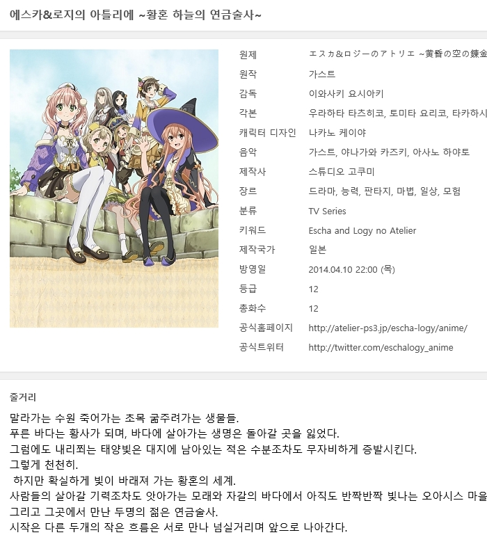 ico[애니] 에스카와 로지의 아틀리에 - 황혼 하늘의 연금술사! 01~12(완)/