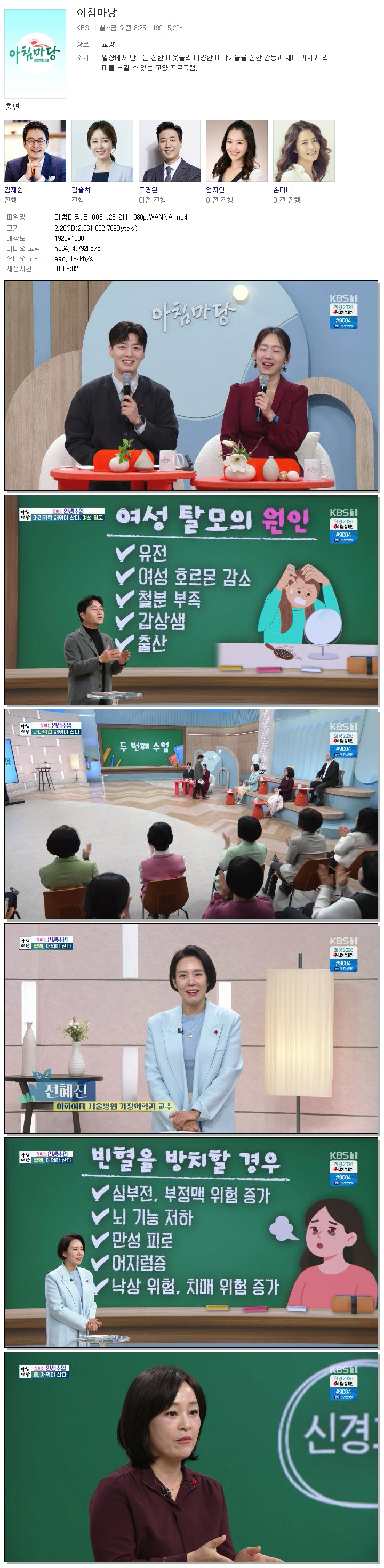 | [KBS1] 아침마당.E10051.251211.1080p.WANNA[엄지인, 박철규].mp4 | 2.2 G | 01:03:02 | 1920x1080 |