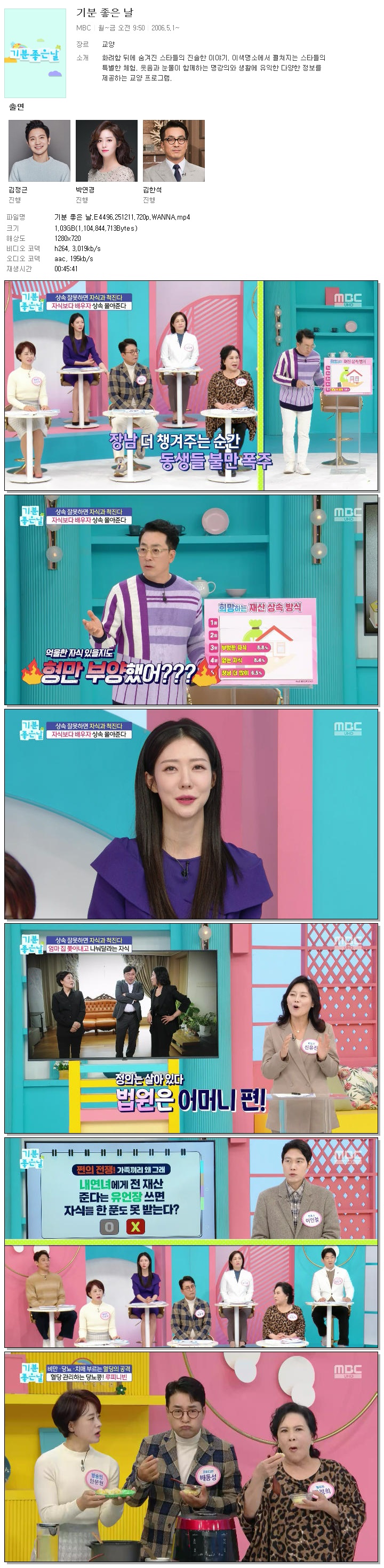 | [MBC] 기분 좋은 날.E4496.251211.720p.WANNA[서인, 박연경].mp4 | 1 G | 00:45:41 | 1280x720 |