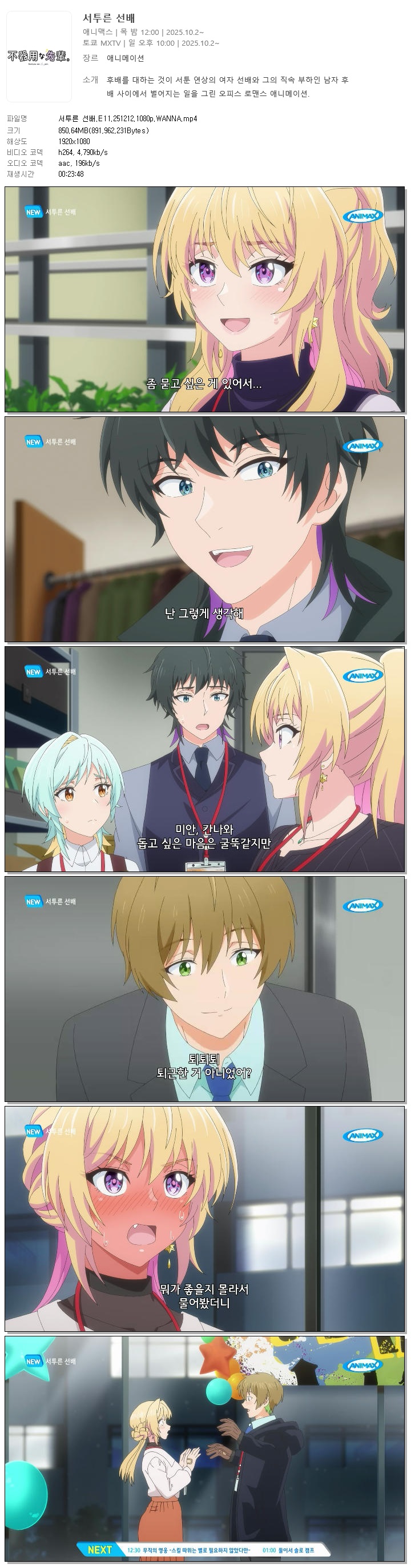 | 서투른 선배.E11.251212.1080p.WANNA.mp4 | 850.6 M | 00:23:48 | 1920x1080 |