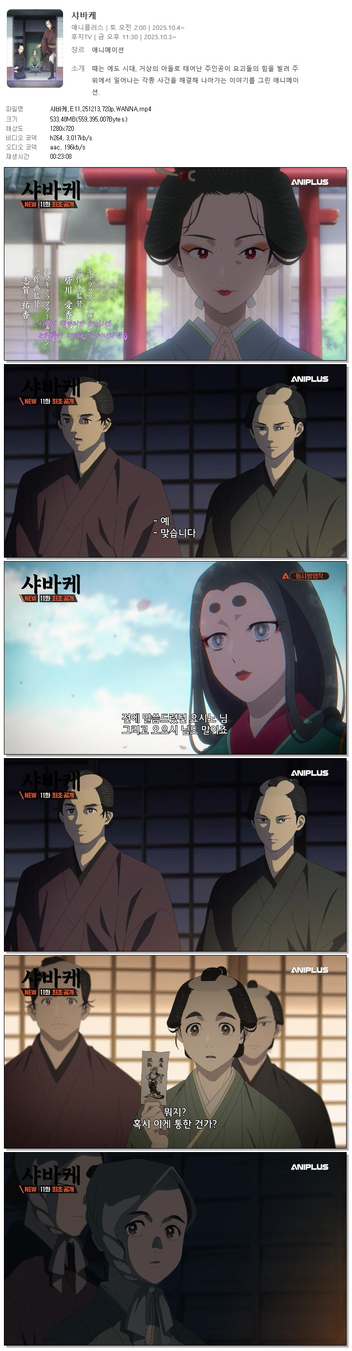 | 샤바케.E11.251213.720p.WANNA.mp4 | 533.5 M | 00:23:08 | 1280x720 |