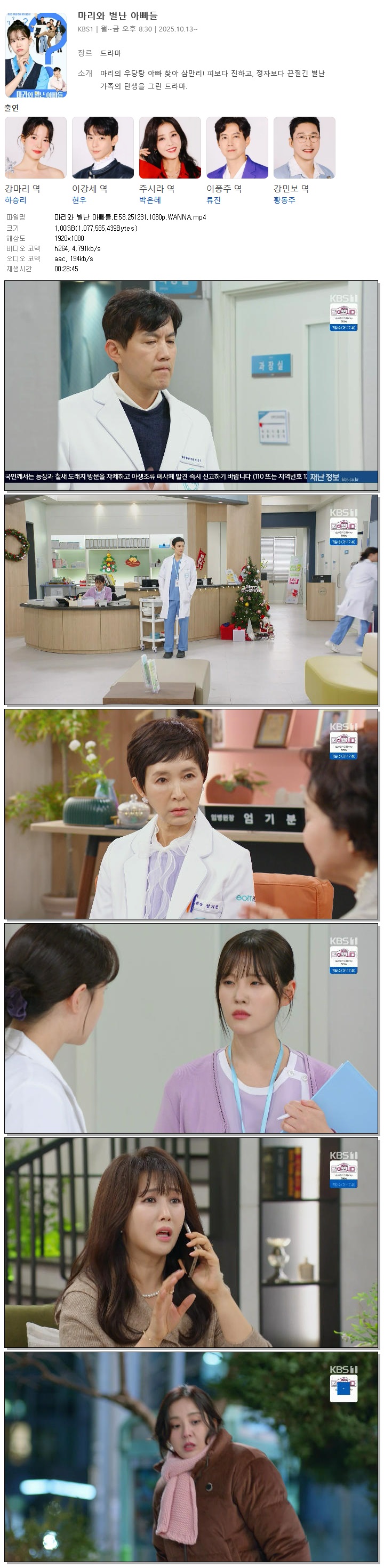 | [KBS1] 마리와 별난 아빠들.E58.251231.1080p.WANNA[하승리, 현우].mp4 | 1 G | 00:28:45 | 1920x1080 |