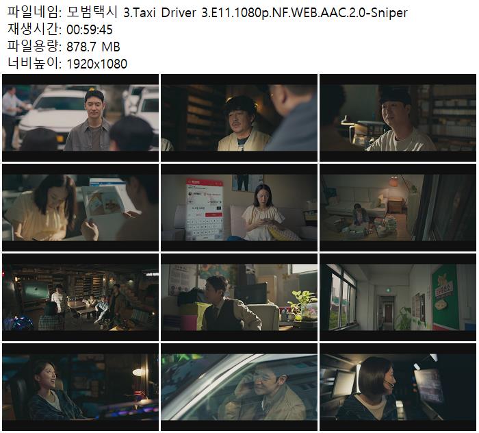 | 모범택시 3.Taxi Driver 3.E11.1080p.NF.WEB.AAC.2.0-Sniper.mkv | 878.7 M | 00:59:45 | 1920x1080 |