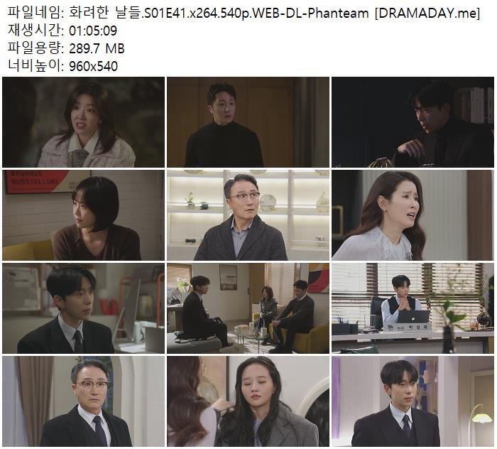 | 화려한 날들.S01E41.x264.540p.WEB-DL-Phanteam [DRAMADAY.me].mkv | 289.7 M | 01:05:00 | 960x540 |