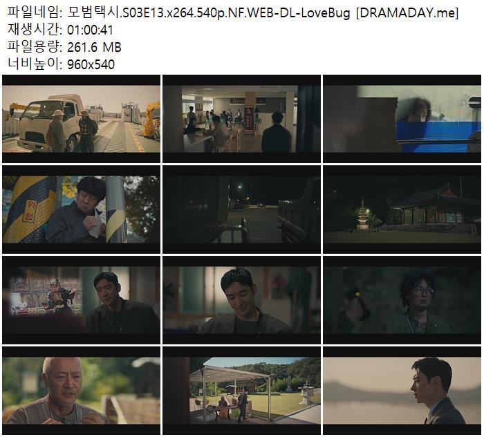 | 모범택시.S03E13.x264.540p.NF.WEB-DL-LoveBug [DRAMADAY.me].mkv | 261.6 M | 01:00:00 | 960x540 |