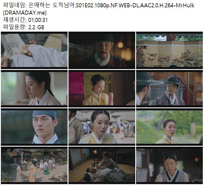 | 은애하는 도적님아.S01E02.1080p.NF.WEB-DL.AAC2.0.H.264-MrHulk [DRAMADAY.me].mkv | 2.2 G | 01:00:00 | 1920x1080 |