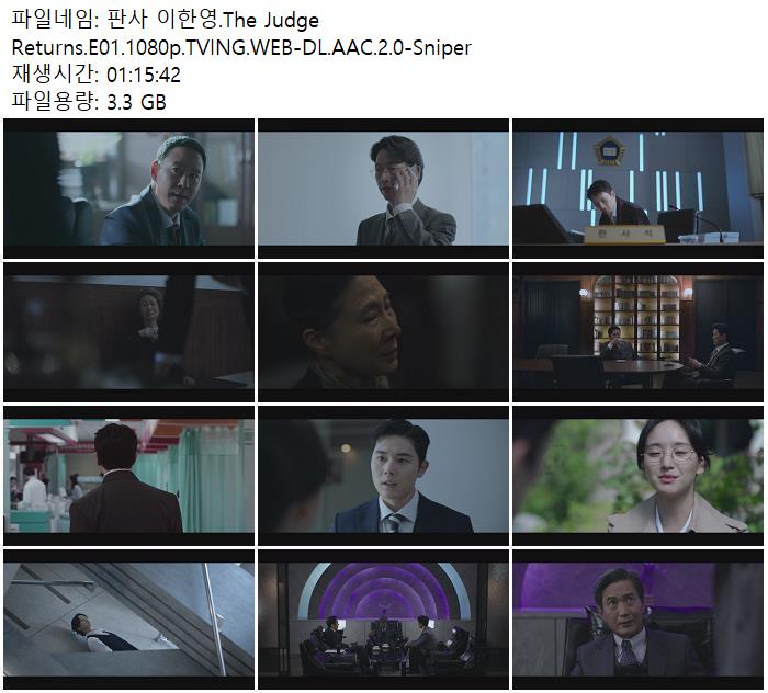 | 판사 이한영.The Judge Returns.E01.1080p.TVING.WEB-DL.AAC.2.0-Sniper.mkv | 3.3 G | 01:15:00 | 1920x1080 |