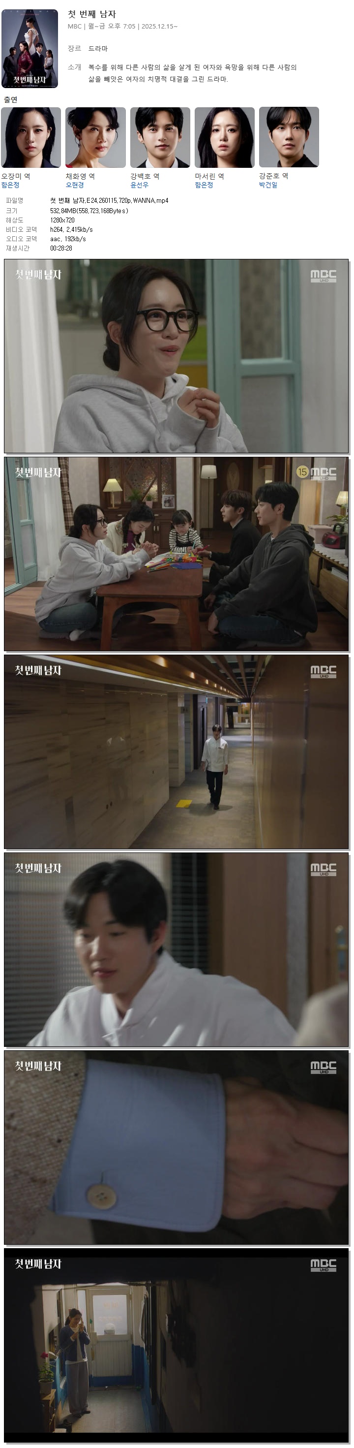 | [MBC] 첫 번째 남자.E24.260115.720p.WANNA[함은정, 오현경].mp4 | 532.8 M | 00:28:28 | 1280x720 |