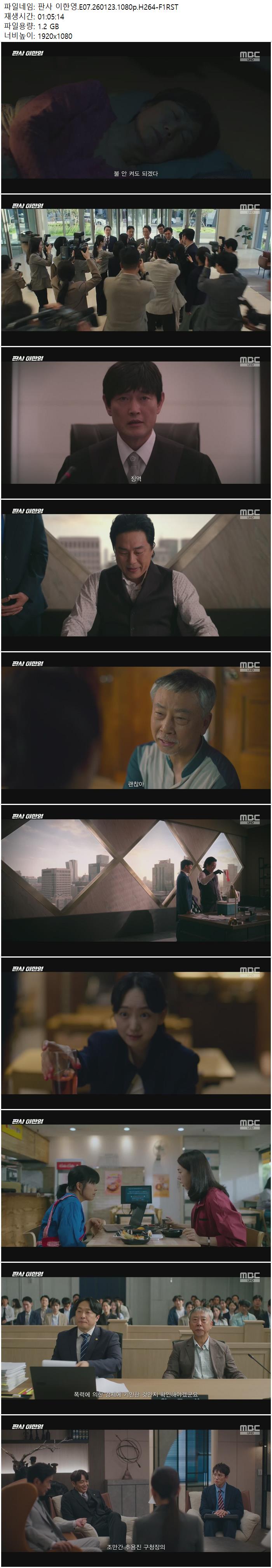 | 판사 이한영.E07.260123.1080p.H264-F1RST.mp4 | 1.2 G | 01:05:14 | 1920x1080 |