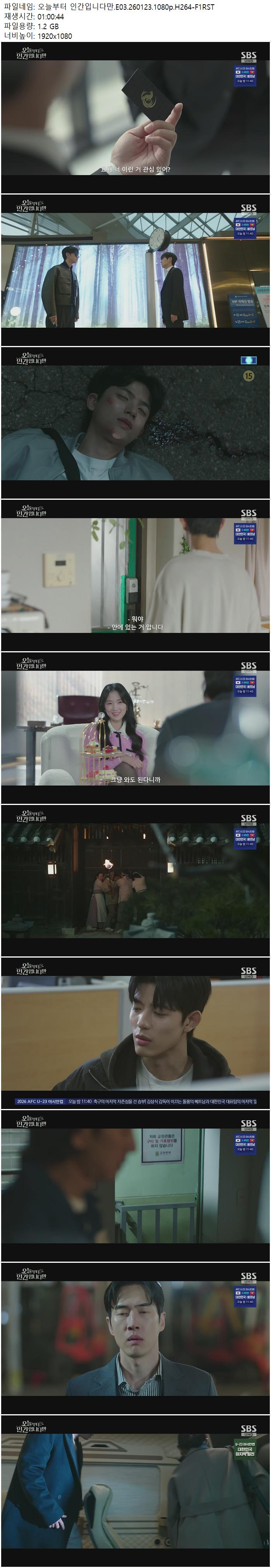 | 오늘부터 인간입니다만.E03.260123.1080p.H264-F1RST.mp4 | 1.2 G | 01:00:44 | 1920x1080 |