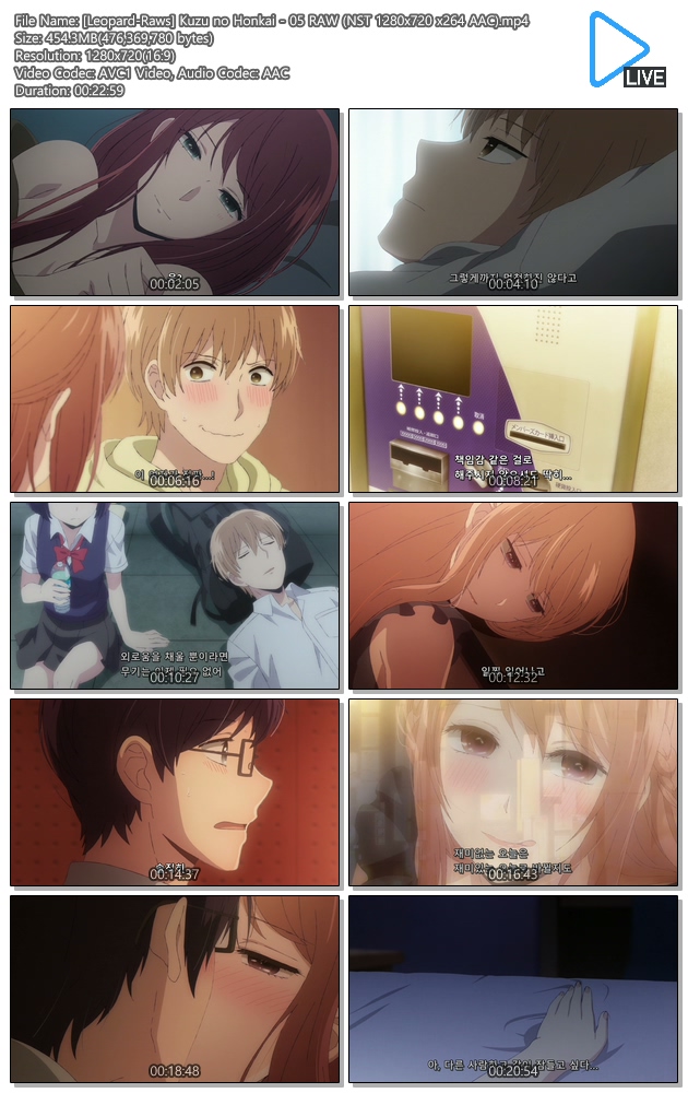 | [Leopard-Raws] Kuzu no Honkai - 05 RAW (NST 1280x720 x264 AAC).mp4 | 454.3 M | 00:22:59 | 1280x720 |