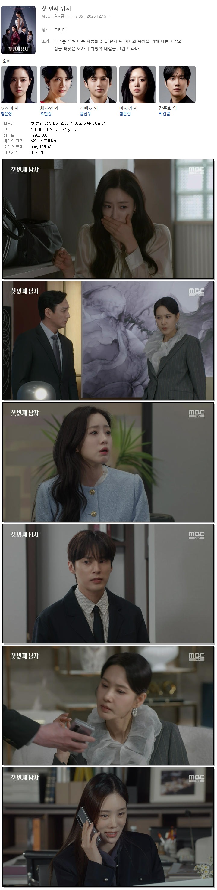 | [MBC] 첫 번째 남자.E64.260317.1080p.WANNA[함은정, 오현경].mp4 | 1 G | 00:28:48 | 1920x1080 |