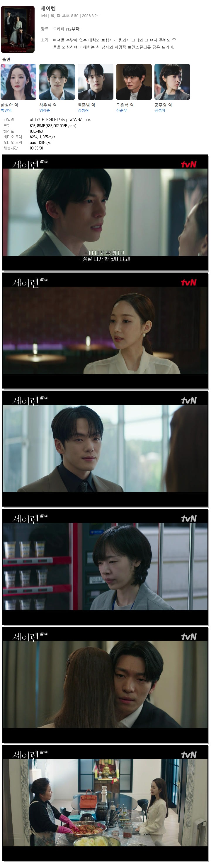 | [TVN] 세이렌.E06.260317.450p.WANNA[박민영, 위하준].mp4 | 608.4 M | 00:59:50 | 800x450 |