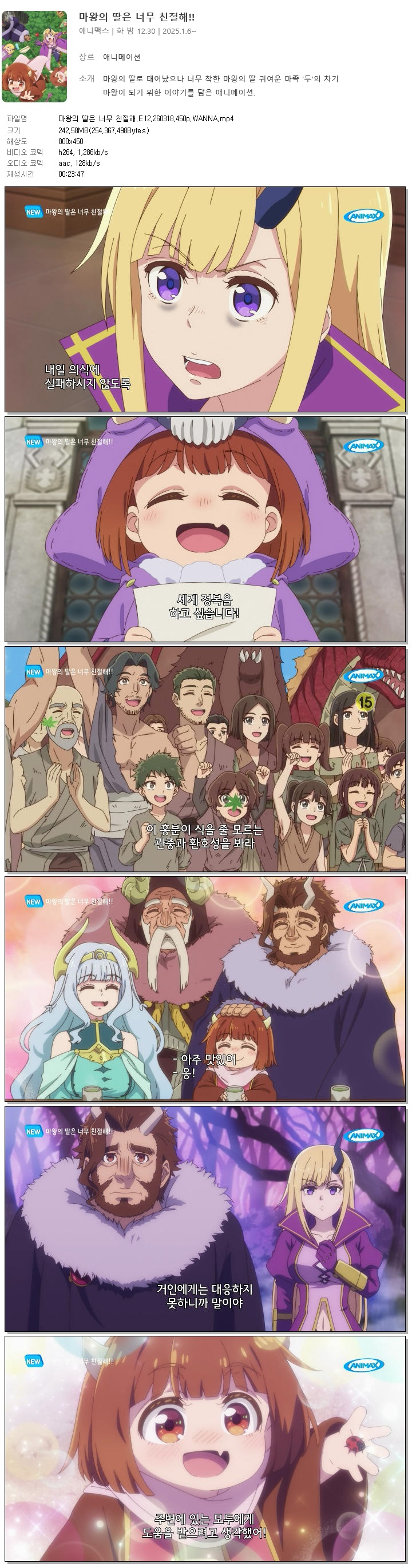 | 마왕의 딸은 너무 친절해.E12.260318.450p.WANNA.mp4 | 242.6 M | 00:23:47 | 800x450 |