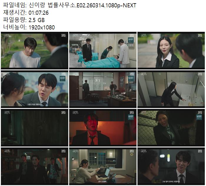 | 신이랑 법률사무소.E02.260314.1080p-NEXT.mp4 | 2.5 G | 01:07:00 | 1920x1080 |