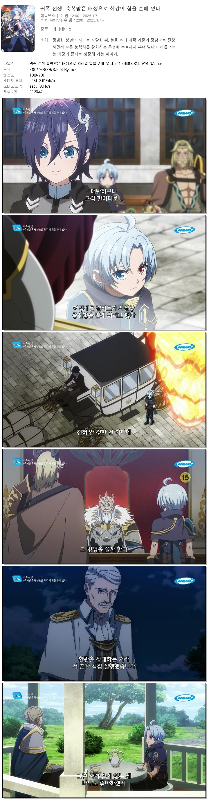 | 귀족 전생 축복받은 태생으로 최강의 힘을 손에 넣다.E11.260319.720p.WANNA.mp4 | 548.7 M | 00:23:47 | 1280x720 |